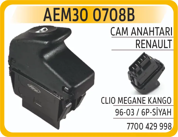 AEM 30 0708B Cam Acma Kapama Anahtarı Kangoo Megane Clıo (Pın 6), OEM: 7700838101, 8200467793, 7700838102, 7700421118, 7700421120. RENAULT CLIO II, KANGOO modellerine uygundur.Kampanyalı ve indirimli fiyatlarla satın al.