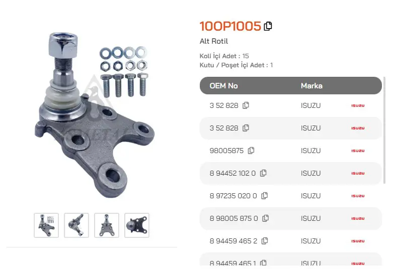 Orijinal Parça Üreticisi Bilgileri (OEMs)