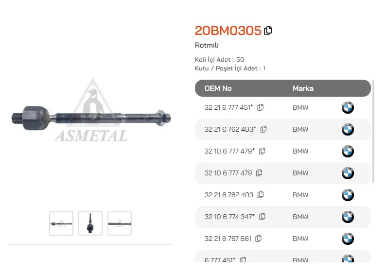 Orijinal Parça Üreticisi Bilgileri (OEMs)