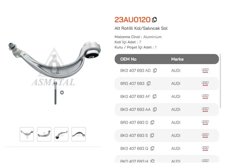 ASMETAL 23AU0120 Rotilli Kol A4 - A5 08-> - Q5 08-> Sol (75mm)