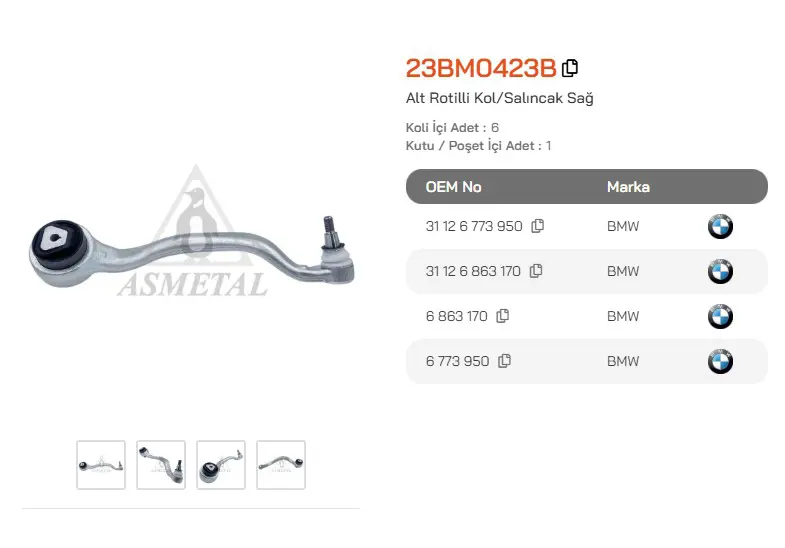 ASMETAL 23BM0423B Rotilli Kol Bmw X5 07-13 E70 - X6 08-14 E71 Üst Sag