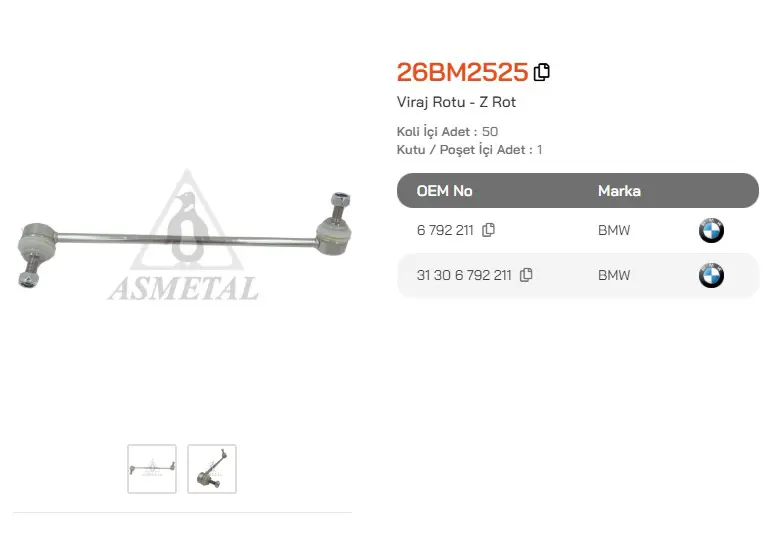 ASMETAL 26BM2525 Z Rot Bmw 1-Seri F20 - 3-Seri F30 (Pls. Kafa) Ön Sol