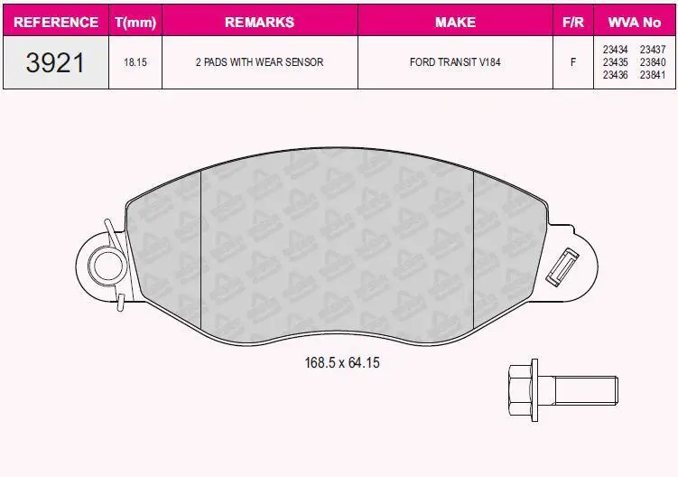 - On Fren Balatası Transıt V347 06 > V347 155ps A.Ceker 11 > Vw Amarok 2.0tdı 10> (1 Adet Ikaz Fısı+
