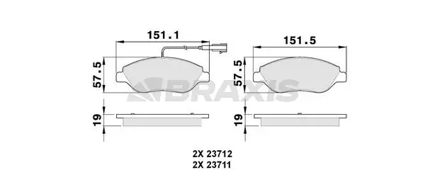 BRAXIS AB0149 On Fren Balatası Bravo 1.4 - 2.0d 10 - 07> 71770002, 71770112, 77362093, 77362196, 77364589, 77365188, 77365808, 9949279