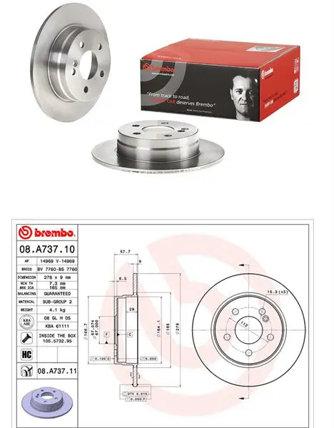 BREMBO 08.A737.10 Fren Dıskı Arka Mercedes W204 C180-C200 DF4948, AND6529, A2044230512, 17756, D6106900, 8A73711, 4231312, LVBD1356Z, DDF1689C1D, BG4152