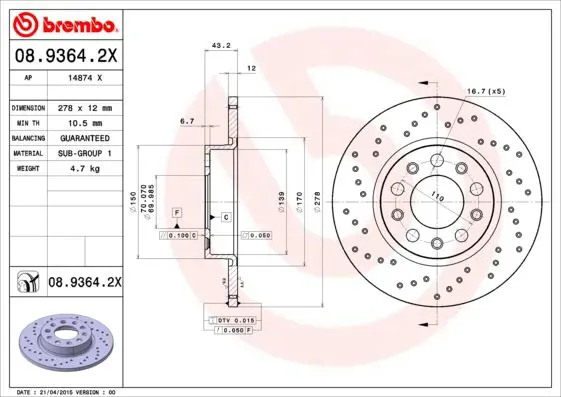 | FIAT 500X 1.6 55263842 | 11.2014- | 110 | SUV |