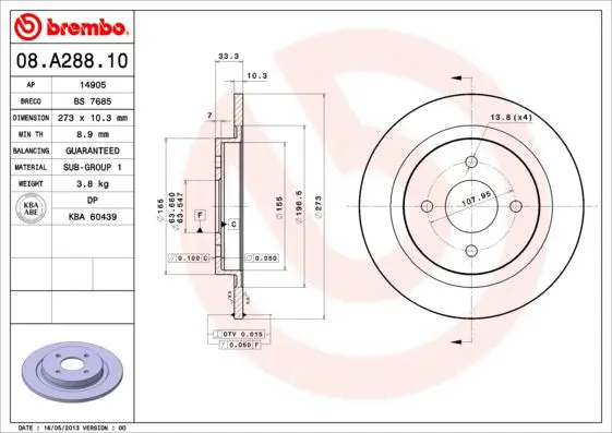 BREMBO 08.A288.10 Fren Dıskı Arka Standard Ford, OEM: 51038, 5022667, 92037800, 563405JC1, 986478815, MDC639, BG2537, 1172654, 8A28810, DDF388. FORD SIERRA II modellerine uygundur.Kampanyalı ve indirimli fiyatlarla satın al.