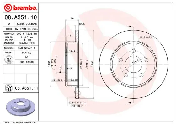 BREMBO 08.A351.11 Fren Dıskı Arka Uv Coated Chrysler, OEM: 4721023AD, 986479102, 17034, 1815209311, 562646JC, MDC1553, 4721023AC, 6109993, SDK6222, 413196. Kampanyalı ve indirimli fiyatlarla satın al.