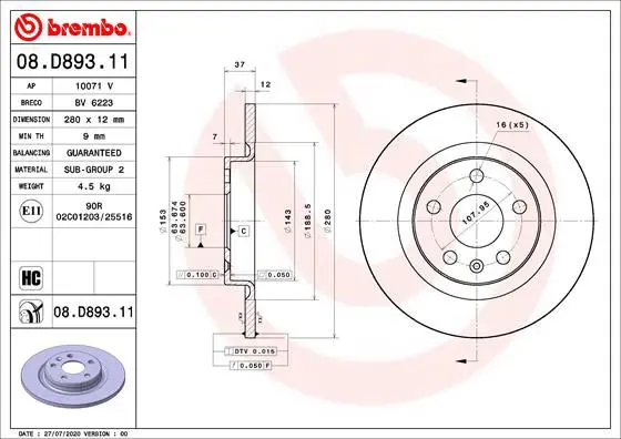 BREMBO 08.D893.11 Fren Dıskı Arka Uv Coated Volvo, OEM: 31471476, DSK3443, 610373420, BDS2154, BG5069C, 355133411, 92323803, 1422130, 56238, BBD5624. VOLVO XC40 modellerine uygundur.Kampanyalı ve indirimli fiyatlarla satın al.
