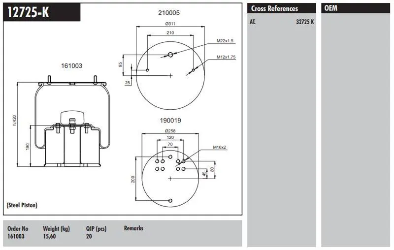 ODM-MULTIPARTS: 12161407, 18161460, 18161490, 18162460