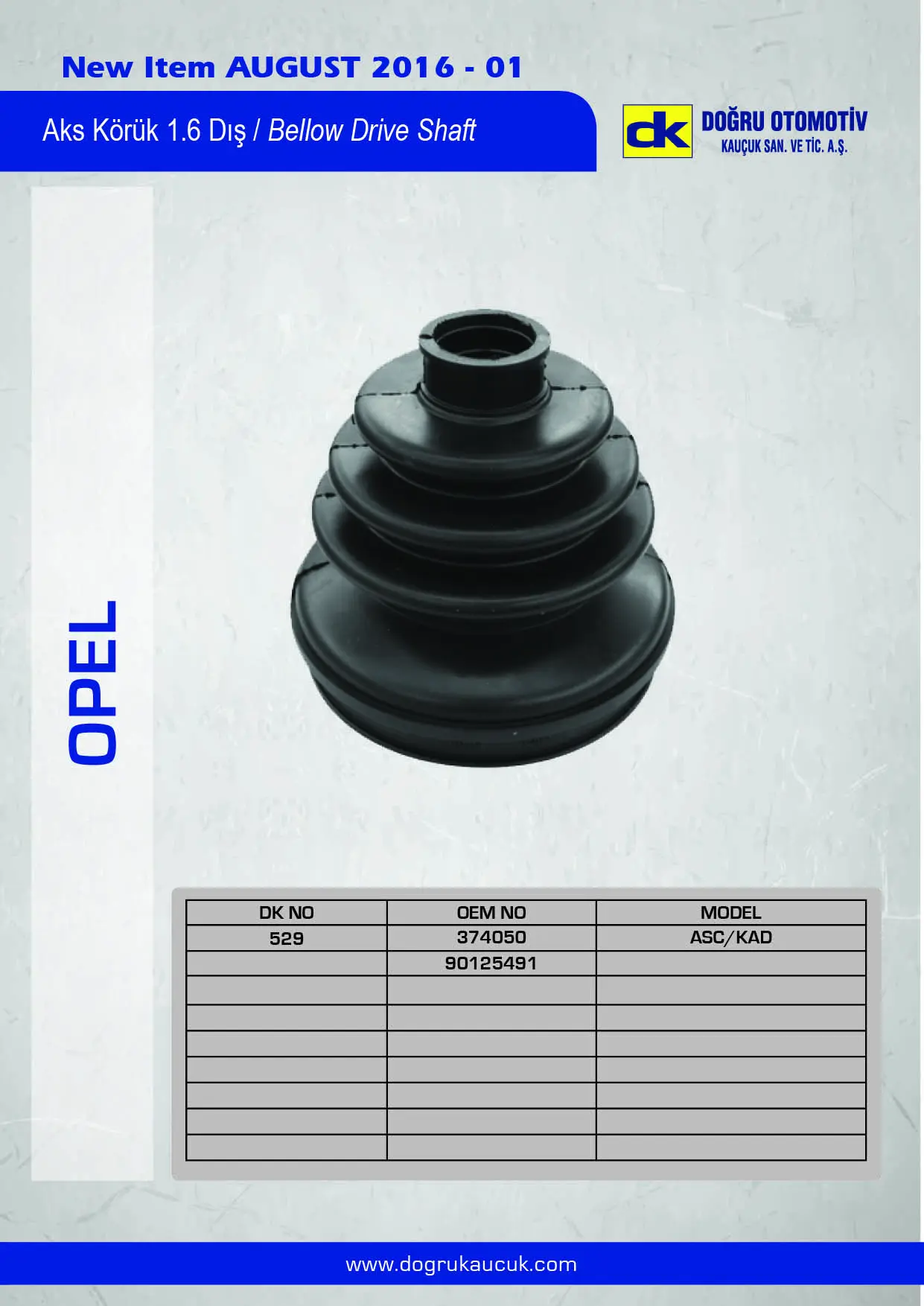 DK 529 Aks Körüğü Dış Vectra B Ascona Kadett 321498203A, 431498203A, 431498203C, 443407285A, 443498203C, 374050, 90125491, 90125494, 90421747, 9943846