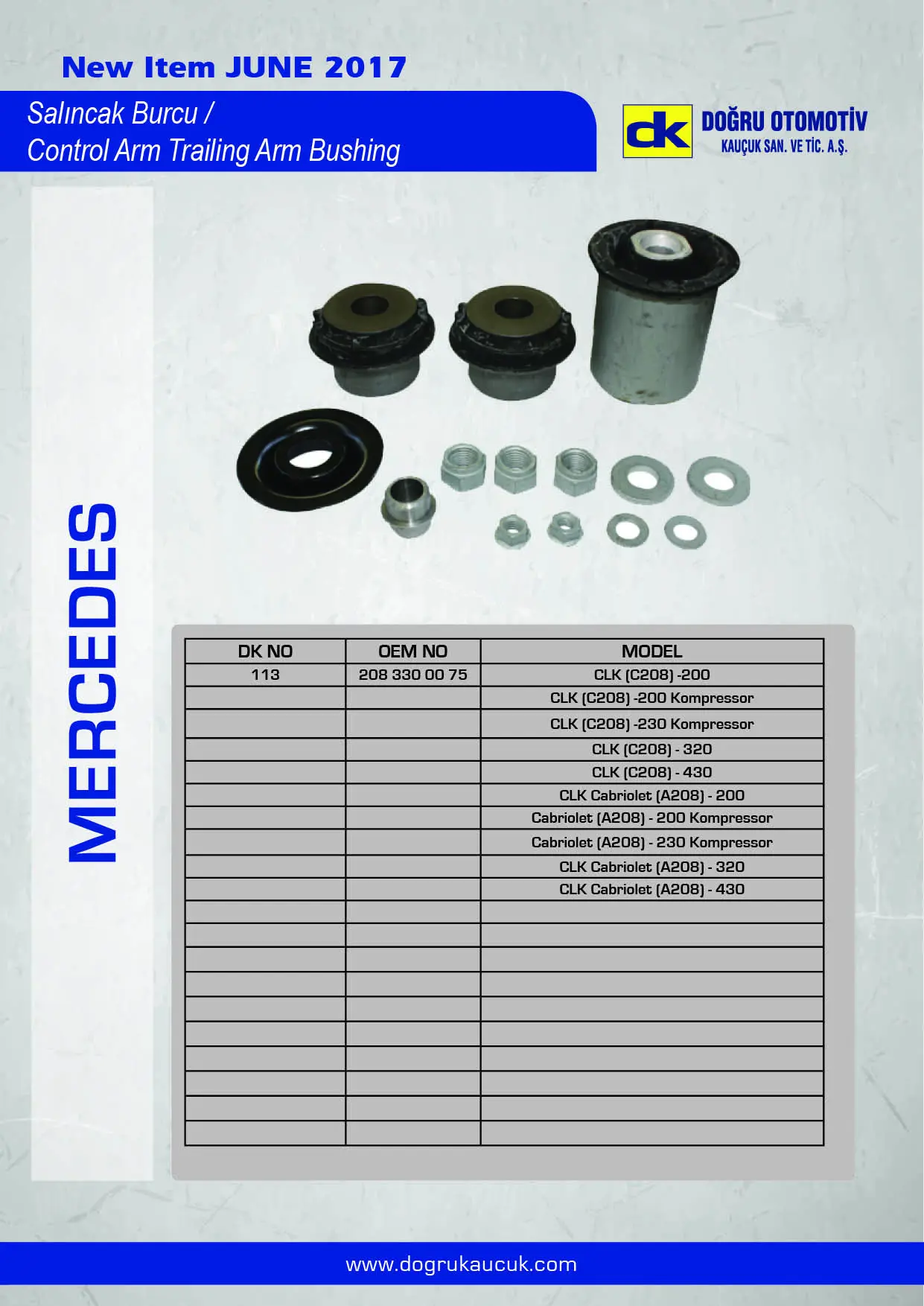 DK 113 Salıncak Burcu On (Set) C208 97>02 A208 98>02, OEM: 2083300075, A2083300075, 2083300075S1. A208, CABRIOLET, CLK, C208 modellerine uygundur.Kampanyalı ve indirimli fiyatlarla satın al.