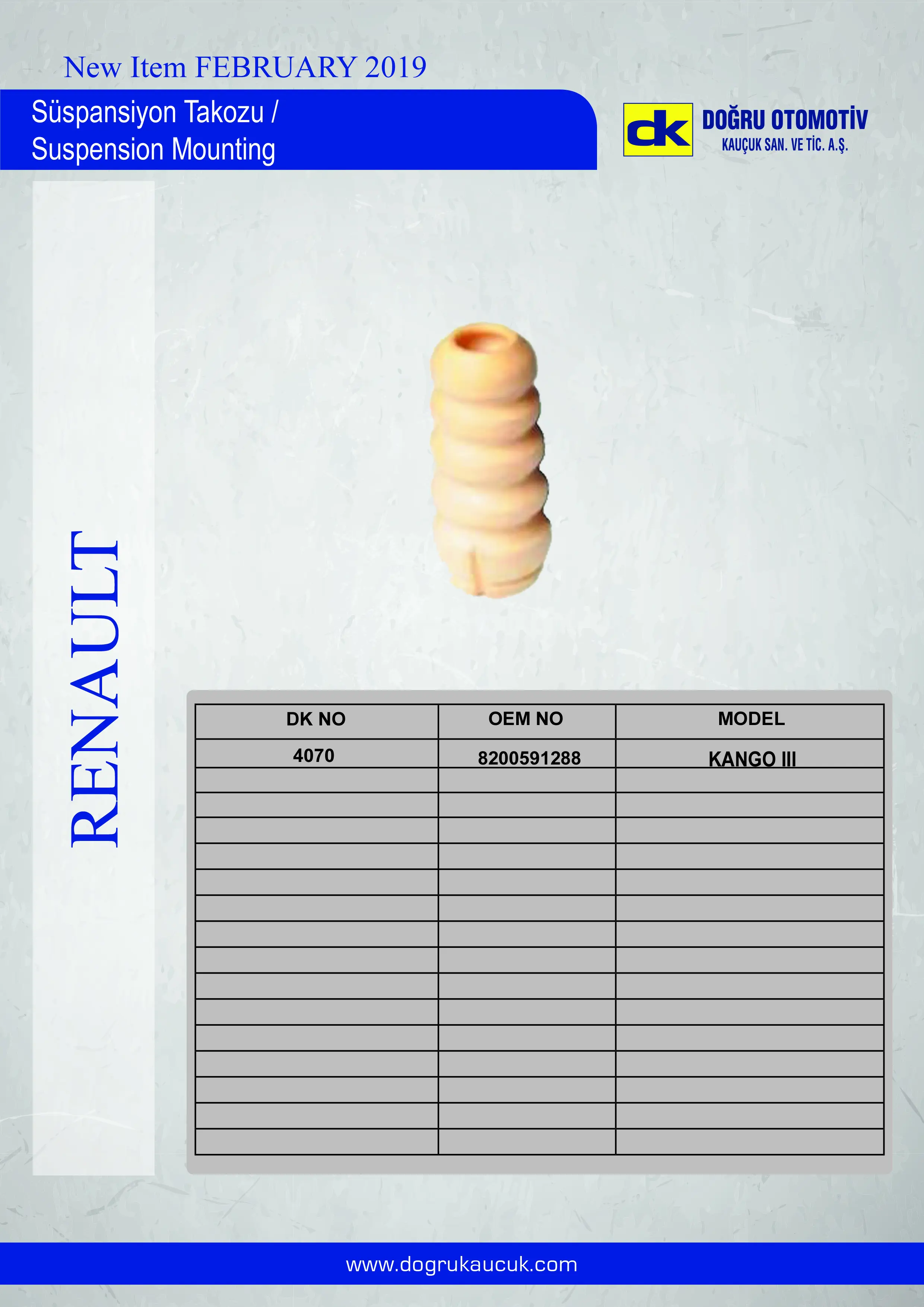 DK 4070 Süspansiyon Takozu Kangoo Iıı 08>, OEM: 8200591288. RENAULT KANGOO , KANGOO / GRAND KANGOO II, KANGOO BE BOP modellerine uygundur.Kampanyalı ve indirimli fiyatlarla satın al.