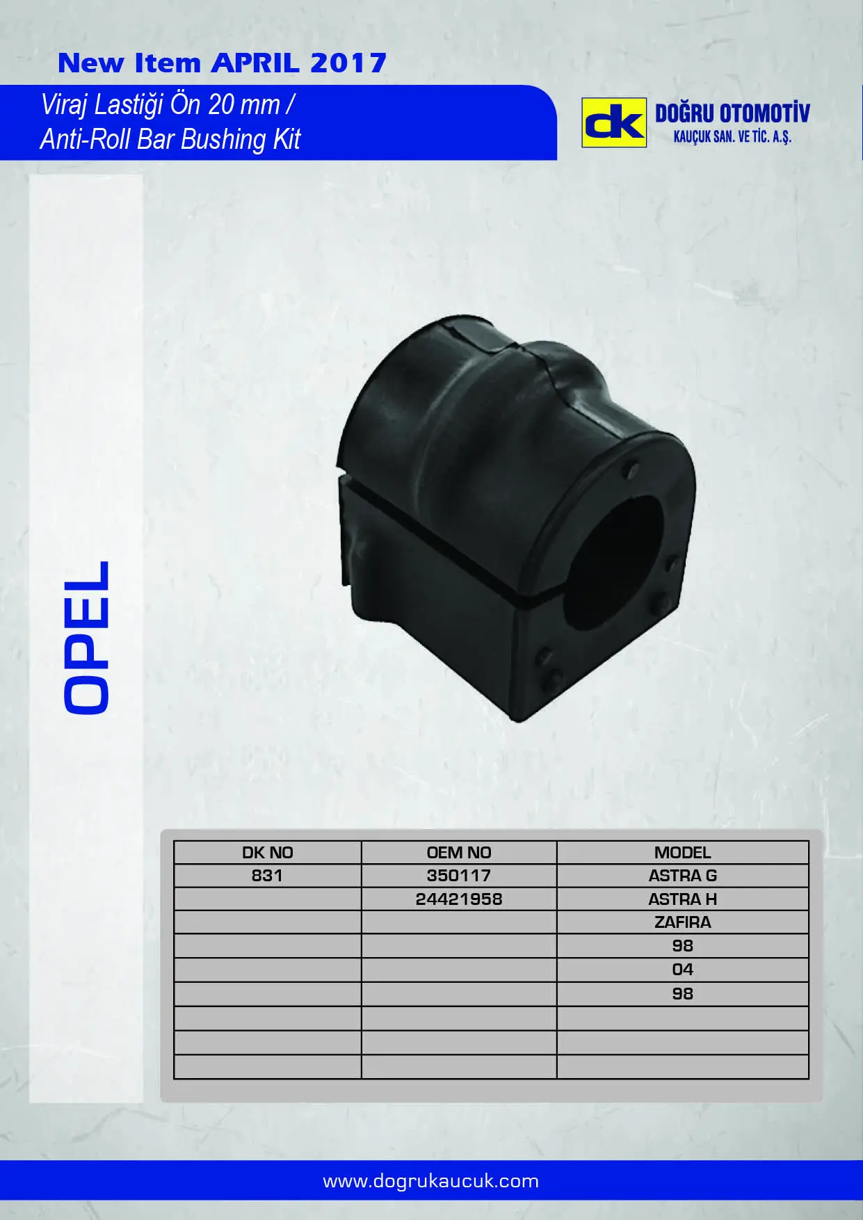 DK 0831 Vıraj Demır Lastiği On Astra G - H Zafıra 350117, 24421958, OPSB7934, 71848435, 71848434, 71848433, 9223176, 90581398, 350140, 350093