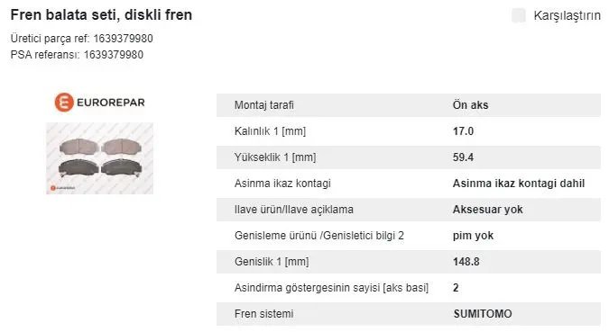 . EUROREPAR 1639379980 E4 Fr Br Pads, OEM: 1639379980. HONDA ACCORD VII, ACCORD VIII, CIVIC IX, CIVIC VII, CIVIC VIII, CROSSROAD , FR-V , INSPIRE , INTEGRA , LEGEND III, SHUTTLE , STREAM modellerine uygundur.Kampanyalı ve indirimli fiyatlarla satın al.