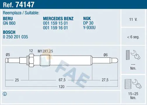 FAE 74147 Kızdırma Bujısı 11591601
