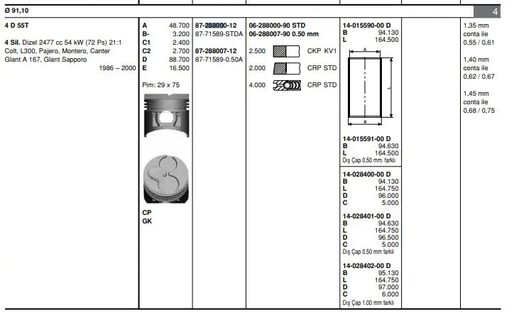 GOETZE NÜRAL 06-28800090 Motor Segman Takımı Std H100 Mınıbus 1997-2005 (Yenı Model) MD050390, MD103391, MD168293, 2304042000, 2304042010, 2304042510, MD332530, SDM31038ZZ