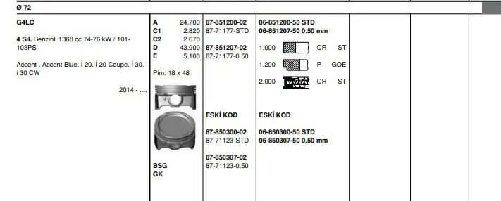 72,50 X 1,0 X 1,2 X 2 - 74KW-76KW - 101PS-103PS - GOETZE NÜRAL 06-851207.50 Segman, OEM: 2304003AA0. HYUNDAI ACCENT IV, i20 II modellerine uygundur.Kampanyalı ve indirimli fiyatlarla satın al.
