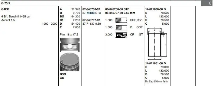 75,50 X 1,5 X 1,5 X 3 - 69KW - 89PS - G4EK - STD GOETZE NÜRAL 87-71130 STD Pıston+segman, OEM: 2341022410. ACCENT modellerine uygundur.Kampanyalı ve indirimli fiyatlarla satın al.