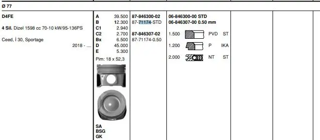 GOETZE NÜRAL 87-71174 050 Pıston+segman 230412U900