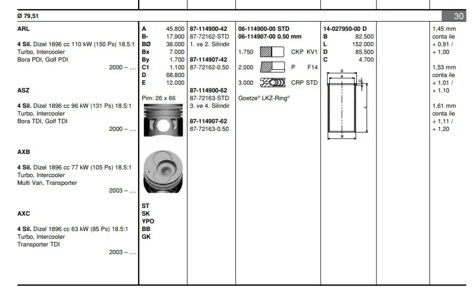 26 Ø (3 ve 4 SILINDIR) (80 mm) GOETZE NÜRAL 87-72163 050 Pıston+segman, OEM: 038107065EM. AUDI A3 , A4 B6, A6 C5 - SEAT IBIZA III, LEON , TOLEDO II - SKODA SUPERB I - VW BORA , BORA I, CALIFORNIA T5, GOLF IV, GOLF VAN IV, MULTIVAN V, PASSAT B5.5, TRANSPORTER V modellerine uygundur.Kampanyalı ve indirimli fiyatlarla satın al.