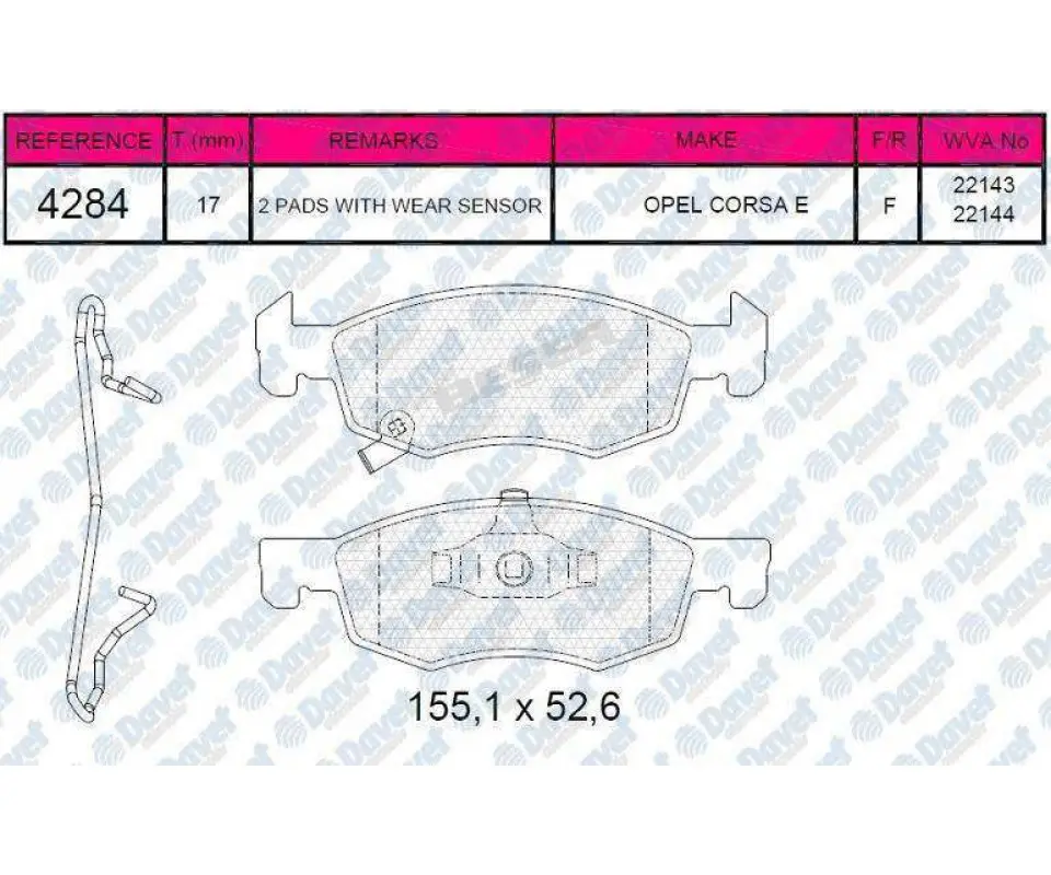 FERBE 88600 Fren Balatası On 14 Jant Corsa E 15- 1605280, 2214301, 9064200100, 95517028, 95524972