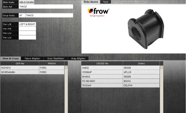 FROW 5041719002 Salıncak Burcu Ford Transıt 91-, OEM: 6521812, 1001713, 7201720, 92VB5484BA, 7M0511413A, FE27330, 95VW58489AB, 95VW5B489AB, 27330, SS2175. FORD GALAXY I - SEAT ALHAMBRA - VW SHARAN modellerine uygundur.Kampanyalı ve indirimli fiyatlarla satın al.