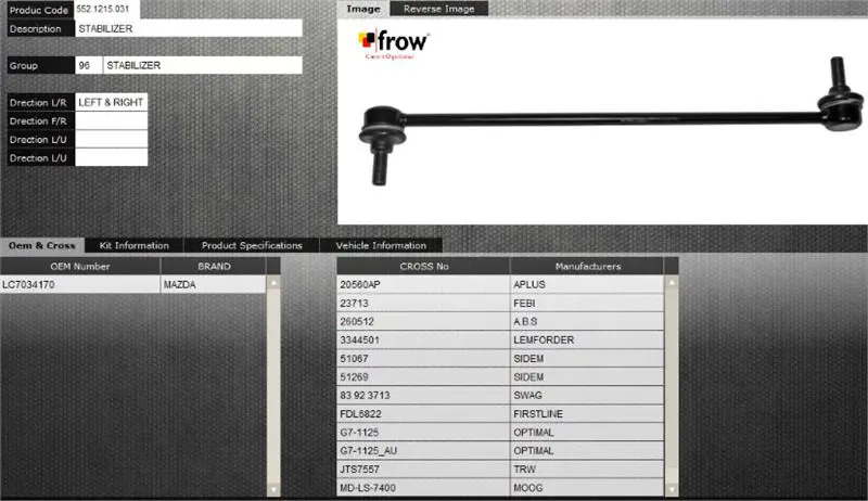 FROW 5521215031 Z Rot Stabilizer On Sag Sol Mazda Mpv Ii, OEM: LC7034170, 53035618, 850050616, 917069, MDL135, TC2296, 3344501, 31178, 3808016, MDLS7400. MAZDA MPV II modellerine uygundur. Düşük kargo bedeli. Kampanyalı ve indirimli fiyatlarla satın al.