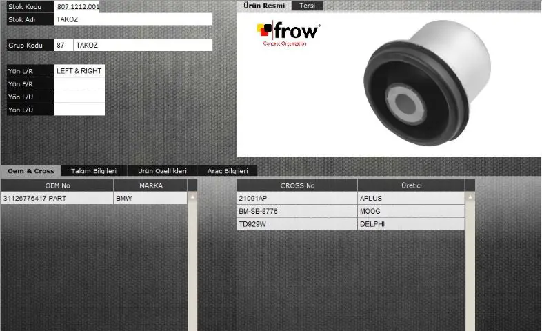 FROW 8071212001 Salıncak Burcu Bmw X5 X6 E70 E71 31126776417, SS7106, 2060, 33252, 58023801, 4150, JTC1456, SS2936, 3384001, 3599601