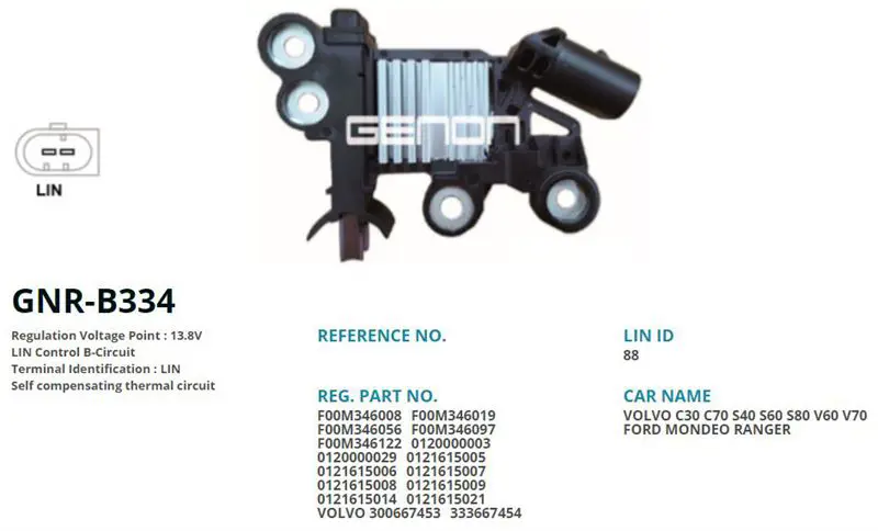 GENON GNR-B334 Alternator Konjektor Bosch Tıp 12v Ford Mondeo 2.0 Tdcı Land Rover Freelander Volvo (Lın) CN1510316AA, 120000003, F00M346166, F000BL06AK, 121615021, 121615005, 121615009, F00M346005, 121615028, 121715002