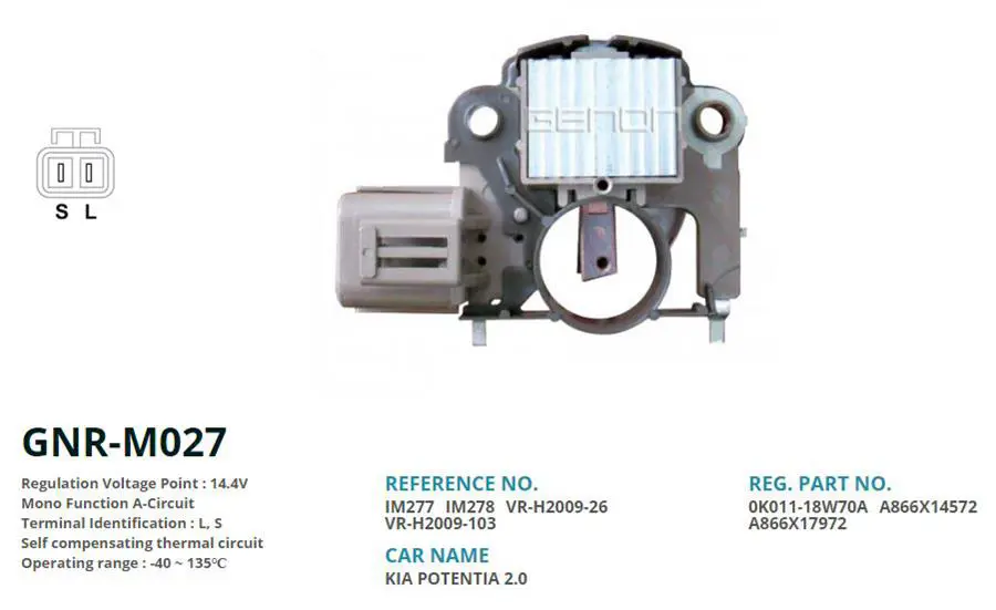GENON M027 12v Nissan-Mitsubishi (L S), OEM: VR, H2009, 26, VR, H2009, 103, IM277, IM27. Kampanyalı ve indirimli fiyatlarla satın al.