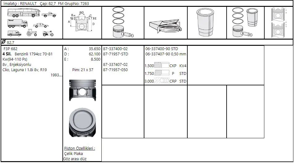 GOETZE NÜRAL 8771957050000G Pıston+segman 0.50 1.8 8v F3p Laguna I-R19, OEM: 7701685393. Kampanyalı ve indirimli fiyatlarla satın al.