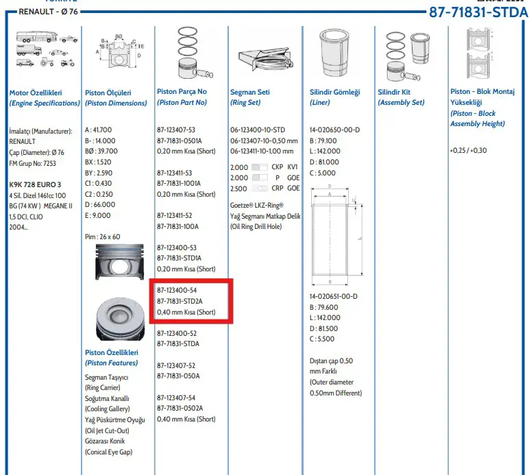 GOETZE NÜRAL 8771831STD20AG (87-123400-54) Motor Piston+segman Renault 76 Mm Std (Ky:0.40 Mm Kisa) 41069600, 7701475354, 120A18456R, 120A16332R, 120A13696R, 8712340020, 21PI00124000, 8712340052, 41068600, 120A17699R