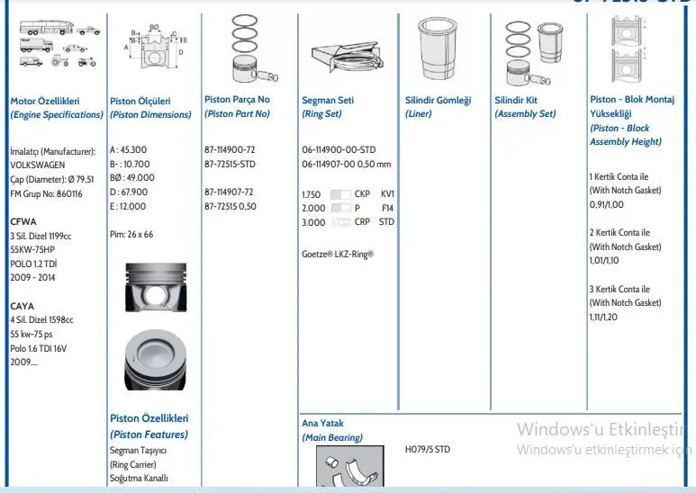 - Pıston 79.50 Mm Std 1-2 Sıl Volkswagen Golf 1.9tdı Asv Avg Alh 30 Perno