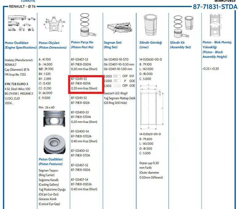 | RENAULT KANGOO 1.5 dCi 75 K9K808 | 09.2010- | 75 | Kasa/büyük limuzin |