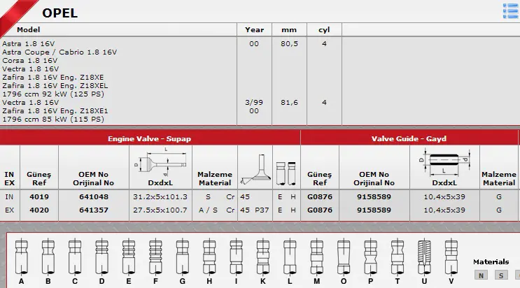 GS 4020 GS 4021 GÜNEŞ 4019-4020 Subap Takimi X18xe Z18xe Vectra B Astra G Zafira A, OEM: 55556689, 641048, 641357, 641388, 90536095, 90536164. OPEL ASTRA G, ASTRA H, MERIVA A, SIGNUM , TIGRA , VECTRA B, VECTRA C, ZAFIRA A - SAAB 9-3 modellerine uygundur.Kampanyalı ve indirimli fiyatlarla satın al.