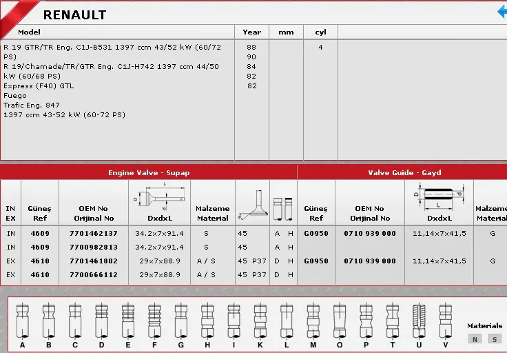 GÜNEŞ 4609-4610 Sibop Takımı 4609 4610 In 4 Ex 4 R12 1400 Std 7700682064, 7701462137, 6001004967, 7700638247, 7700666112, 7700677772, 7701460690, 7701461214, 7701461802, 7701463181