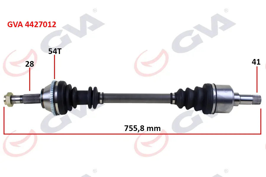 GVA 4427012 Komple Aks Sol Ducato-Boxer-Jumper 2.5tdi (94-02) Abs'Li (54diş) (755mm) 1491239080, 3272J1, 32727K, 3272J5, 1463107080, 3272J6