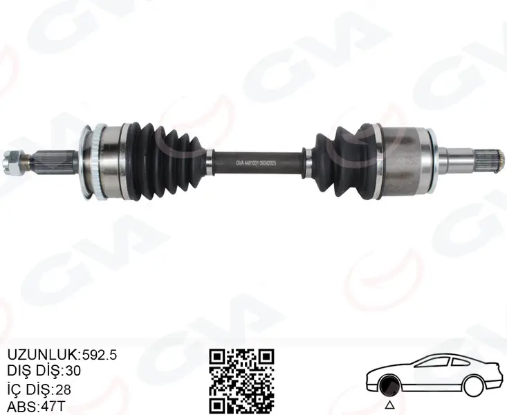 GVA 4481001 Komple Aks Sol Mitsubishi L200 30 X 592.5 X 28 2.5, OEM: 3815A307, MN110546, 3817A319, MN110548, 12080672, JAPGI569, 839159, J2825162, MR580692, 3815A310. Düşük kargo bedeli. Kampanyalı ve indirimli fiyatlarla satın al.