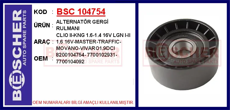 İthal 104754 Alternatör Gergi Rulmani Clio Ii-Kng 1.6-1.4 16v L, OEM: 7700102931, 4449670, 4410172, 93190705, 4431986, 7700109450, MW30621284, 9201850, 4506181, 8200833570. Düşük kargo bedeli. Kampanyalı ve indirimli fiyatlarla satın al.