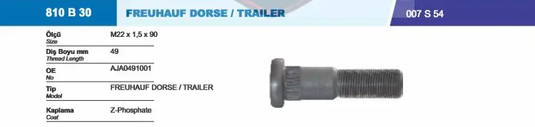 İthal 810B30-007S54 Bıjon Ve Somunu Dorse Fruehauf Dorse, OEM: AJA0491001. Kampanyalı ve indirimli fiyatlarla satın al.