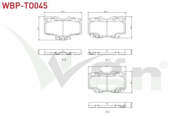 WGN WBP-TO045 Fren Balata On Toyota Hı-Lux Pıck Up (_N_) 2.4 D 1983-2005- Hı-Lux Pıck Up (_N_) 2.5 D 1983-2005 - L WBP-TO045