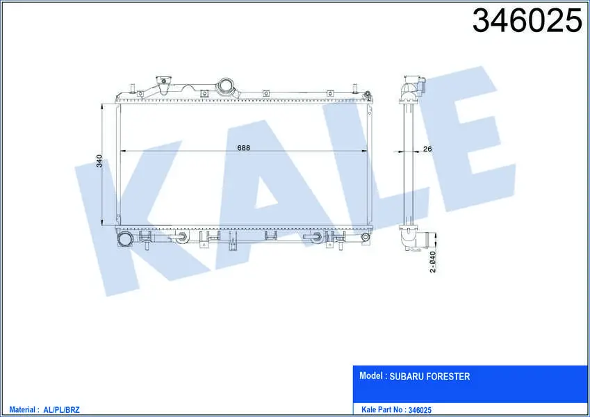KALE 346025 Motor Radyatoru Forester, OEM: 45119FG010, 45119SC020, 45119SC030, 67716, DRM36005. SUBARU FORESTER modellerine uygundur.Kampanyalı ve indirimli fiyatlarla satın al.