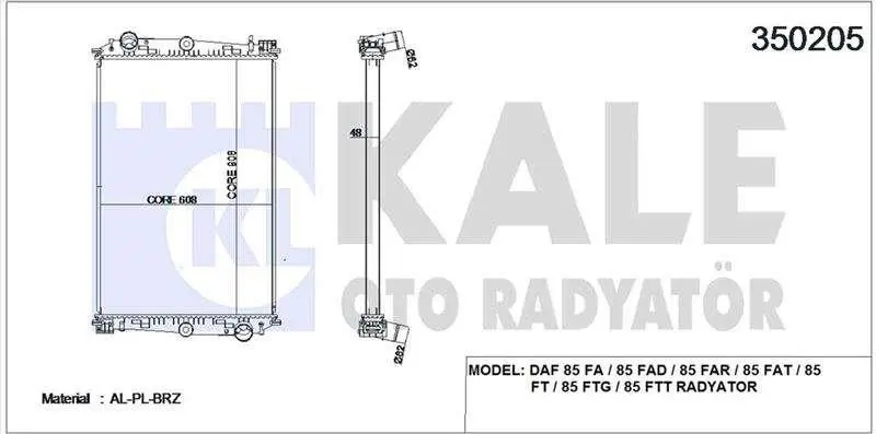KALE 350205 Motor Su Radyatoru Daf 85 Fa - 85 Fad - 85 Far - 85 Fat - 85 Ft - 85 Ftg - 85 Ftt (Cercevesız) - (Mt 1241583, 509586, DF2024, 70192N, 1324257R, 70199N, CR1549000S, 70191N, 560073N, 545257