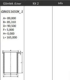KING PISTON G86011650K-1M Motor Gomlek Transıt V348 2,2 Puma 155ps V363 V362 11> Ranger 2.2 Tdcı 11>17 14-022110-00