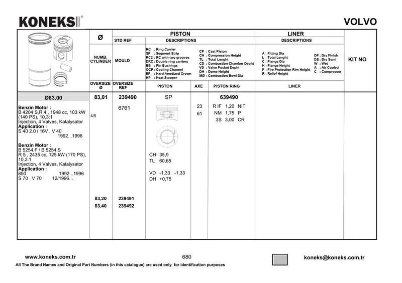 KONEKS 639490 Motor Segmanı 83mm Std Safrane - Laguna 2.0 Cc 16v (N7q), OEM: YENMAK 9161, STD, 7438610027. Kampanyalı ve indirimli fiyatlarla satın al.