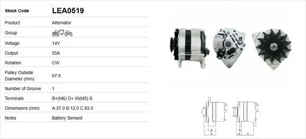 LUCAS LEA0519 Alternator A127 - 14v - 55a 82982788