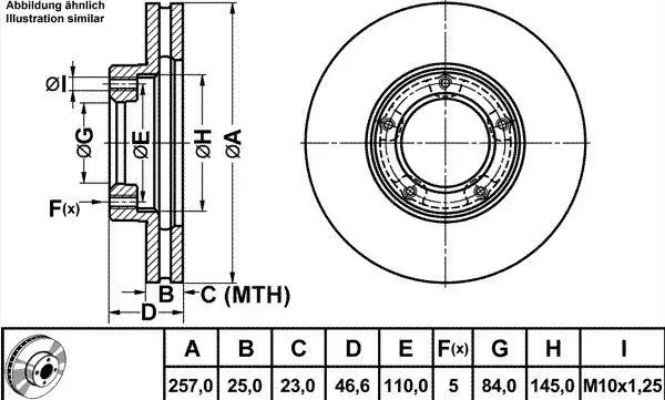 MGA 50358 Fren Dısk On Hava Kanallı 257-5 Toyota Hılux Iv V Vı 89 - 96 , Toyota Hıace 90 - 04 Ln85 18-08100701, 4351235180