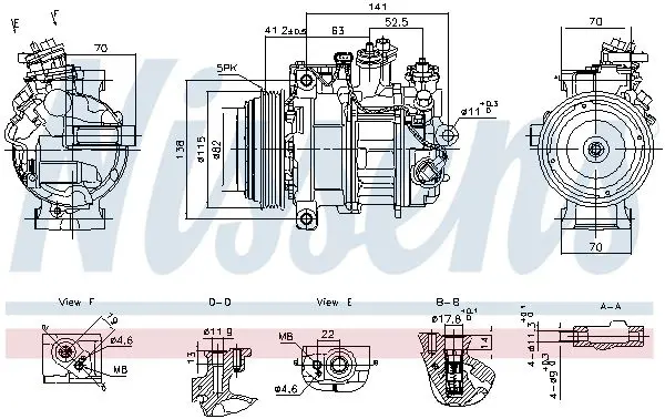 NISSENS 890919 Klima Kompresor Mercedes W205 18> E200 16> GE4471401454, A0008301301, 4471401452, A0008304500, GE4471401450, GE4471401452, GE4471401453, 8301301, 8304500, ACP01220