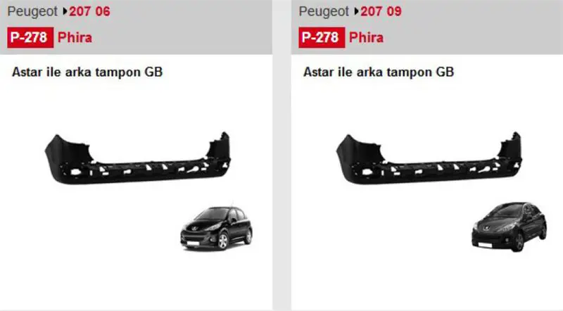 PHIRA P278 Arka Tampon Astarlı Sw P207 06- Os 7410EH, 4226655, 3653293C, 3652903A, 619128, 4029547, 5508955, 25043536, ACI4029547, 107172725
